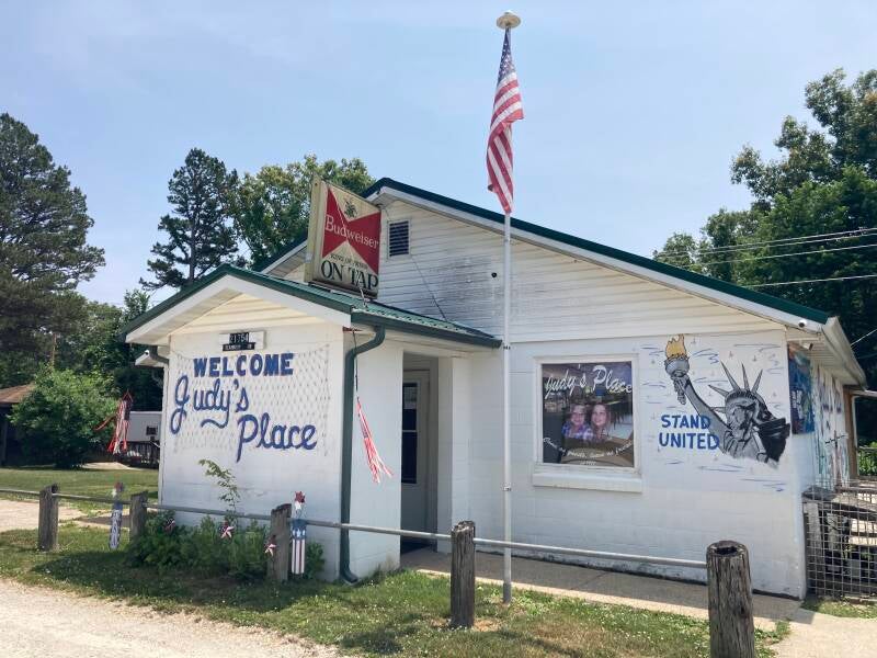 A really good drive today, long sections of quiet country roads that we could motor through. Called in some places and met some nice people, at Devils Elbow we stopped for a drink at Judys place.