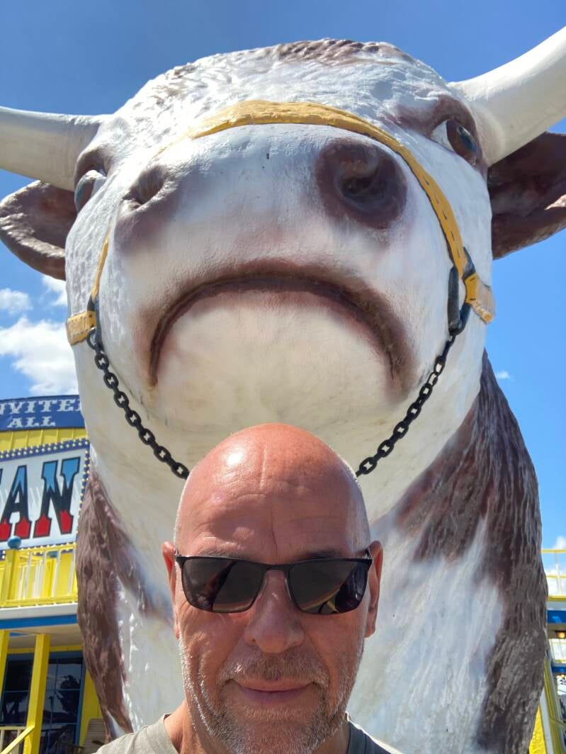 Staying in the big Texan motel tonight next to the big Texan steak house. Their infamous 72 ounce steak is free if you can eat within a hour, it would do me for a week.